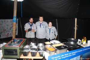 Am Samstag kamen wir dann an unserem Ziel in Friedrichroda an, wo das Landeslager des VCP Mitteldeutschland stattfand und wir mit ca. 80 anderen PfadfinderInnen zusammentrafen. Das Schönste bei der Ankunft war, dass auf dem Zeltplatz schon unsere Jurte stand und noch viel wichtiger: Die Küche, die das gesamte Landeslager versorgte, war fest i