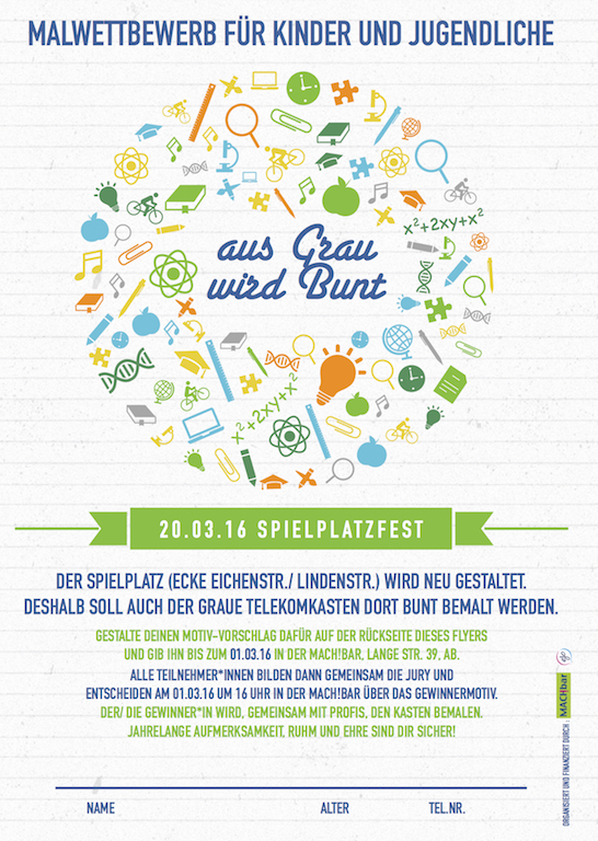 Die MACH!bar ruft alle Kinder und Jugendlichen aus Berne und umzu auf, sich an der Gestaltung eines neuen, grauen Telekomkastens zu beteiligen.
